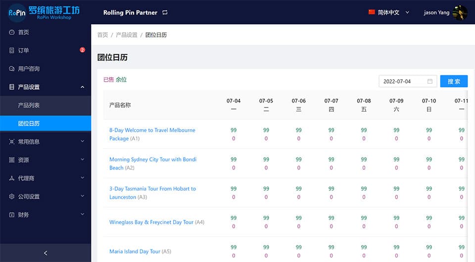 所有产品的已售和余位数量都按照日期清楚显示,即时确认代理订单,支持预留团位。