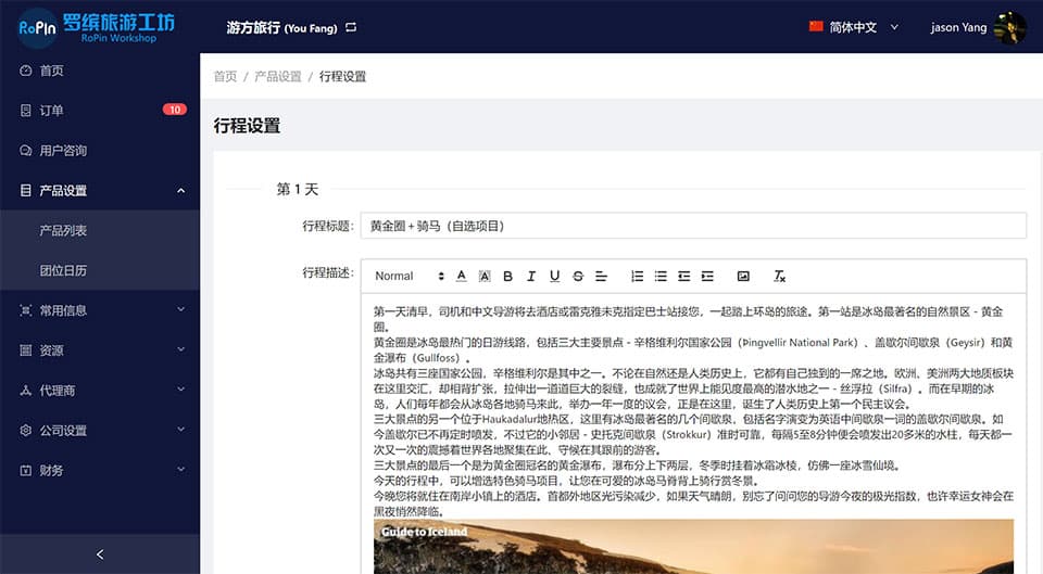 在您录入产品时即可安排到每日行程中,让资源跟着行程走,不再头疼于各类资源该如何调配。