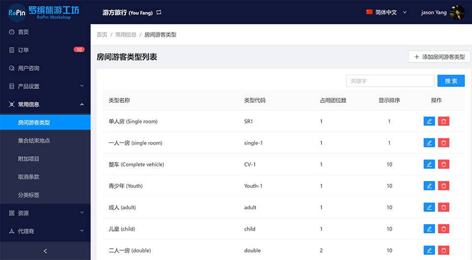 提前录入所有资源、酒店房间类型、
